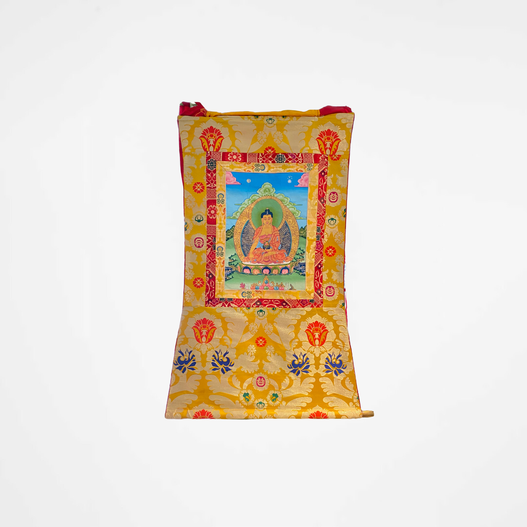 A Thangka painting is a Tibetan Buddhist artwork, typically painted on cotton or silk, often featuring religious deities, mandalas, or scenes from Buddhist teachings. These paintings serve as teaching tools and are crucial in Tibetan Buddhist culture. They are usually hung vertically as scrolls, often protected by a textile cover.
