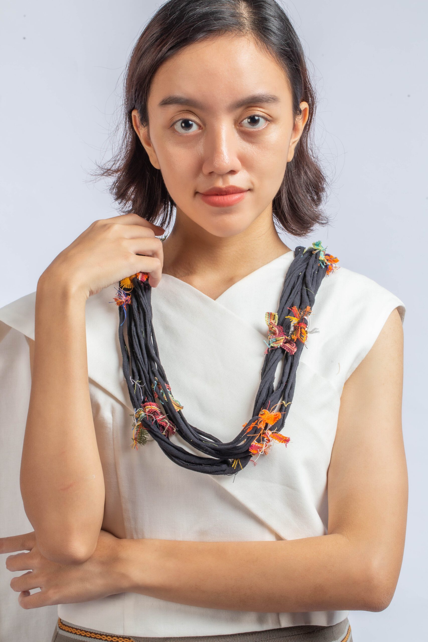 A bold and edgy accessory designed for women who want to make a statement. Its unique shredded design adds texture and style to any outfit, while the sleek black color ensures versatility and sophistication. Made from soft, lightweight fabric, this scarf drapes beautifully, offering both comfort and flair.